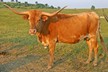Starting to brindle. Ellie has two daughters with great twist horns.