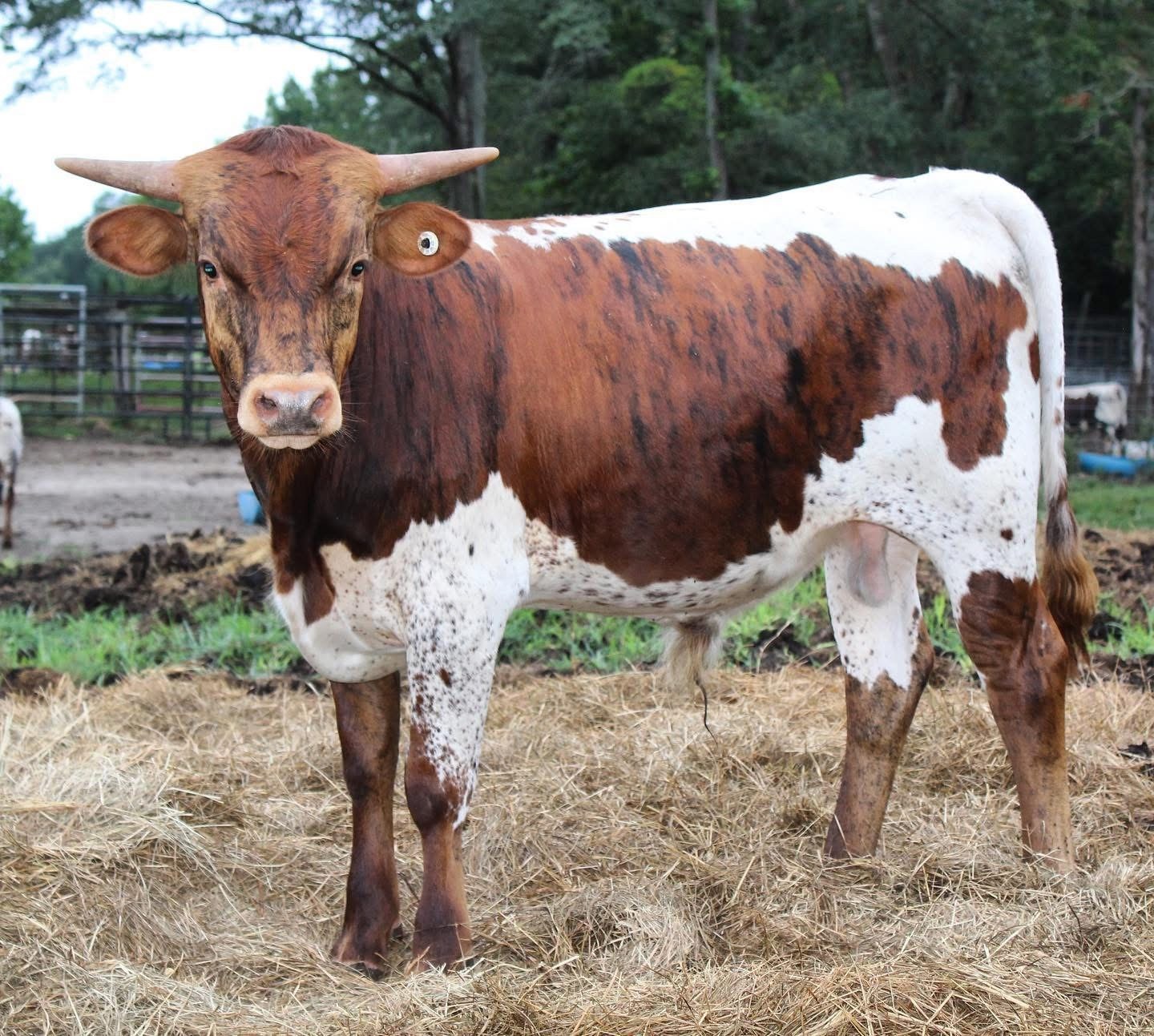 This young bull is special! His pedigree on the material side goes back to Royal Reputation. His Sire Bubba Tuff Chex gives him his beautiful brindle colour. He’s clean and correct. SOLD. Thank you Clay!