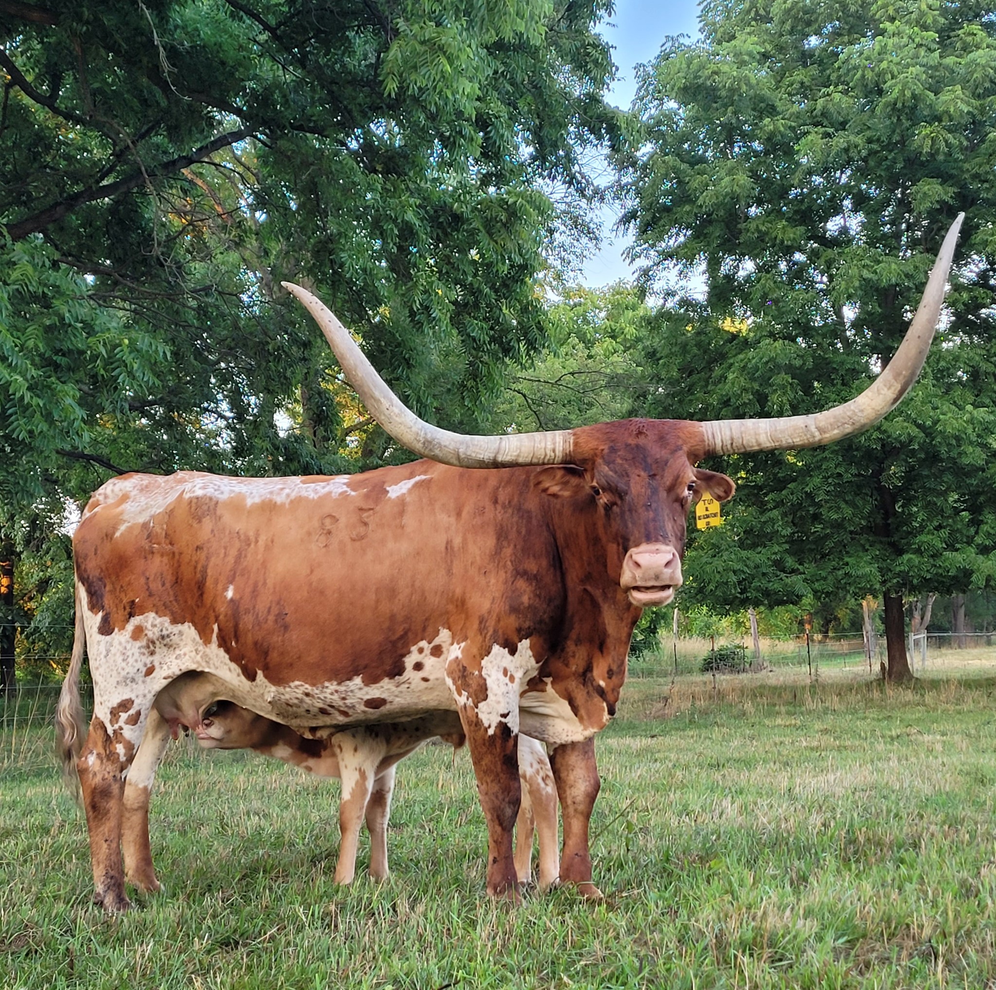 Scratchit is a large, full bodied cow sired by the legendary 80"+ TTT, JP Rio Grande, and out of 73.75" TTT, BL Patchit who is a daughter of VJ Tommie (Unlimited) and granddam to 97.50" TTT, BL Rio Catchit. Proven genetics on top and bottom for size and horn. All of Scratchit's offspring will be Millennium Futurity eligible.