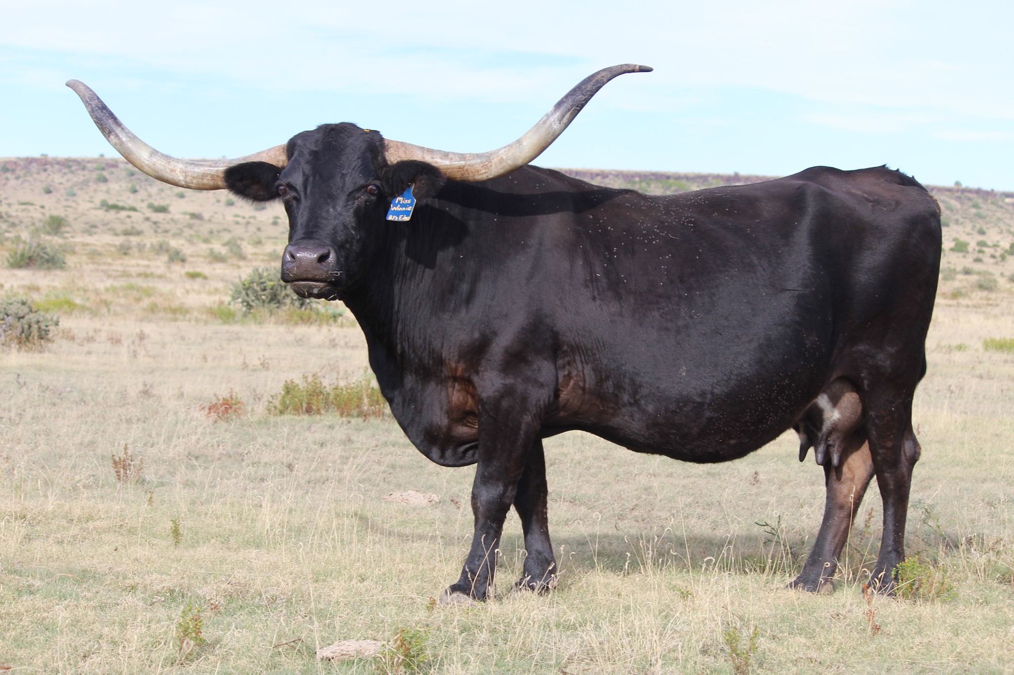 Winnie is a great producer, she always has one of the biggest calves. Her sire is a full brother to Jamakizm! She's in the mid 60" TTT with a ton of total horn.